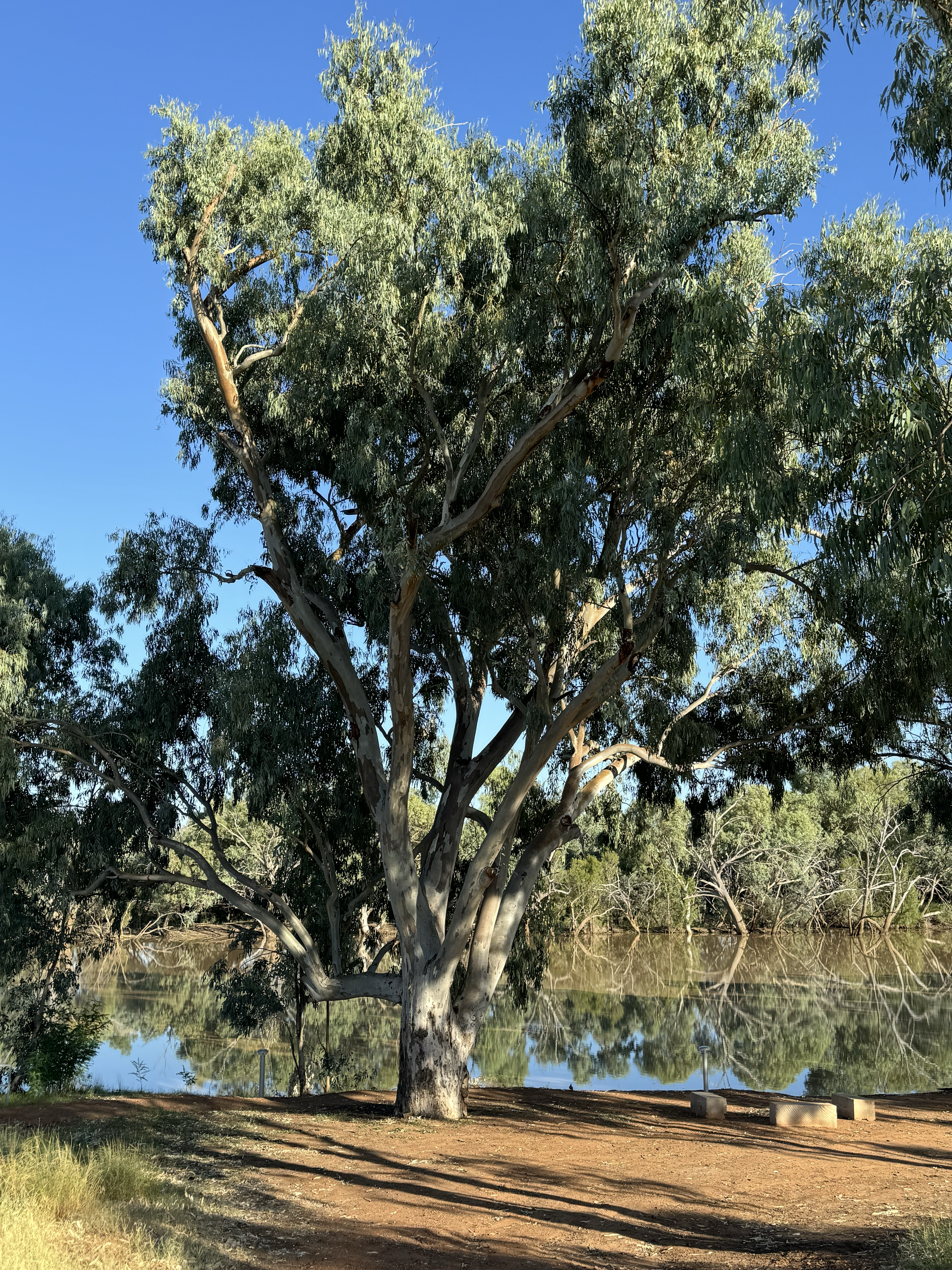 On the Warrego River, there is a bridge at the entrance of Cunnamulla from Thargomindah. There is a walkway along the river going up to the Hot Springs. It is a great place to pull up when entering the town. There are shade trees and sandstone seats. Under the bridge, there is a space where you can enter the water with your kayak.