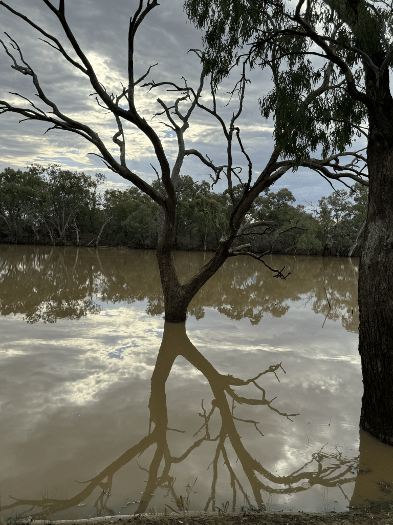 The Allan Tannock Weir is part of an original stock route and was formerly known as Keane’s Crossing. Situated 5 km south of Cunnamulla, the Weir is on the Warrego River. There are many old tree stumps still standing like sculpted driftwood along the edges of the river banks. This gracefulness reflected on the water in the afternoons creates a relaxing ambience.