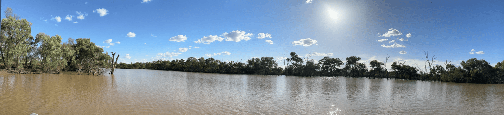 I went back out to the Allan Tannock Weir today to experiment with the panoramic function on my new camera. I think it works well, but I also need to learn a lot more about using the images on products. I love the weir, and I regard the trees along the river as sculptures. I will spend the weekend on the Warrego. I intend to pay for the whole weekend at the Hot Springs with the kayak on the bank below. At the moment, the Hot Springs is only open from 6-9am and then 5-9, so I will sit on the bank and do writing, painting and other work in the middle of the day.
