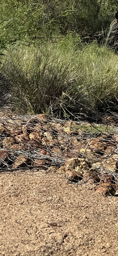 Speaking of man-planning, grass and wire netting hold the rocks and sand in place. We haven’t had much rain here, so this is all coming down from other places. There is no need for sandbagging and the like. I will do my research and see if this is Mitchell Grass.