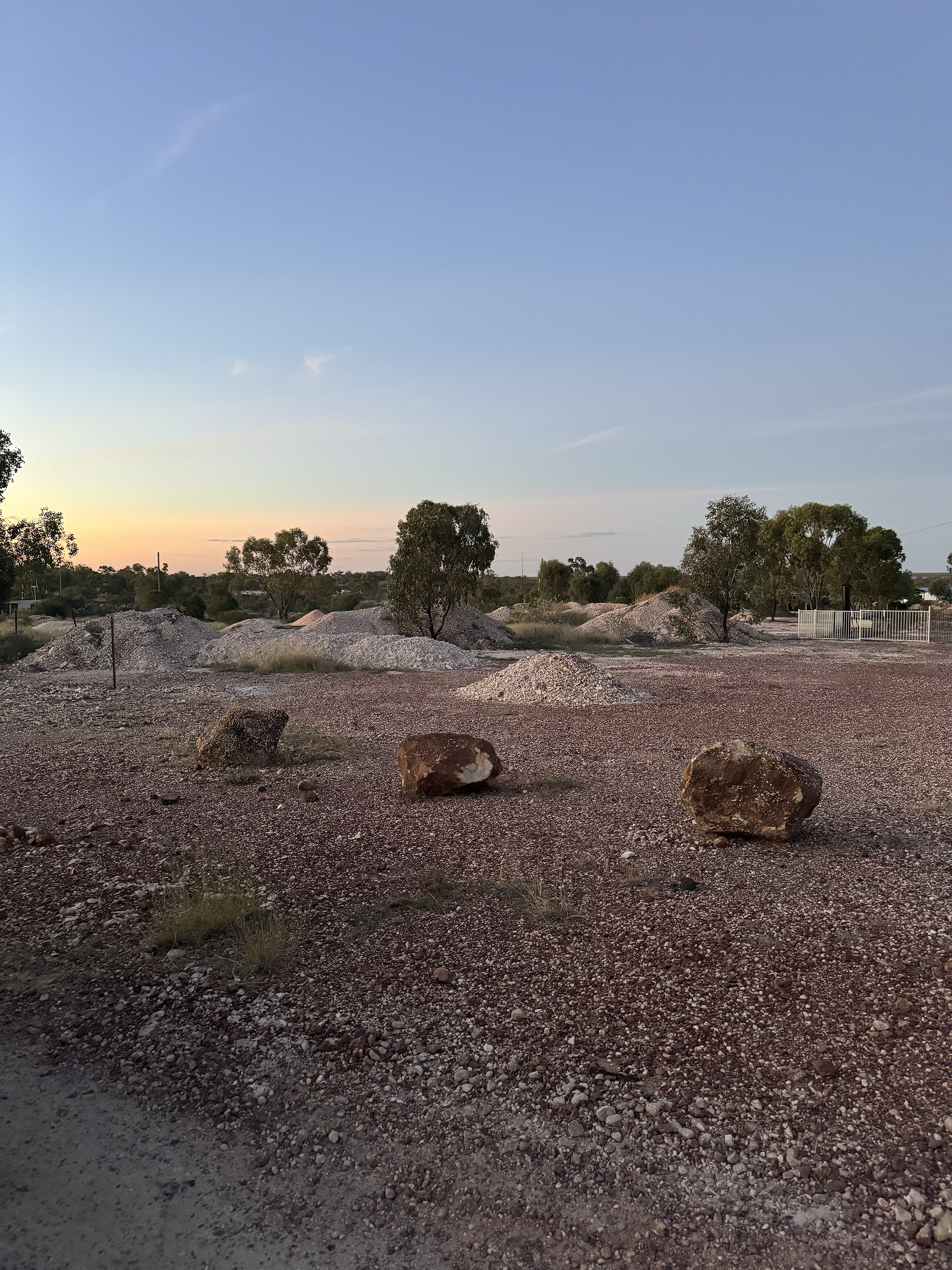 The image of the Artesian Bore Bath above is particularly inviting. It portrays an image of health and clear, fresh well-being. But as a contrast, look at the image below which was taken very close by. I took advantage of a Poster Factory special lately, where, as an artist, I could receive a free introductory print if I paid postage. Surprisingly, I chose to have the print below made up for framing. It will be called – Three Rocks in a Surreal Landscape. This photo symbolises the morning I got lost trying to find my way back from the Cactus Farm. There was nothing to judge by, and the Map on my phone could not get its bearings amongst the rabbit warren, piled mine discards. There is nothing to judge direction by – just more and more mine discards. You can sense why I say ARID.