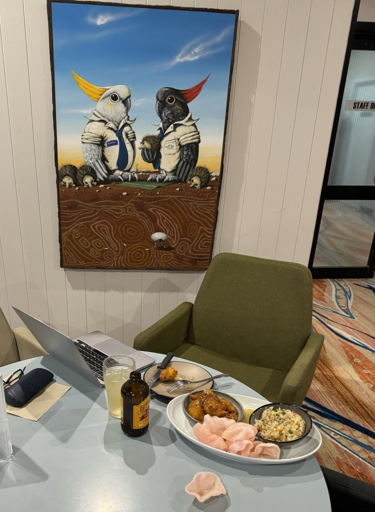 There is a fun, crazy side to Lightening Ridge, contrasted to a crazy opal mining aura. Both things kinda collide and then gel at the Lightening Ridge Bowls Club, where it seems to me that people do a whole lot of gambling; being a poor struggling artist, I do a whole lot of watching others gamble while I sit at my laptop and toil away. Pokies and Keno and partying. But I like it.